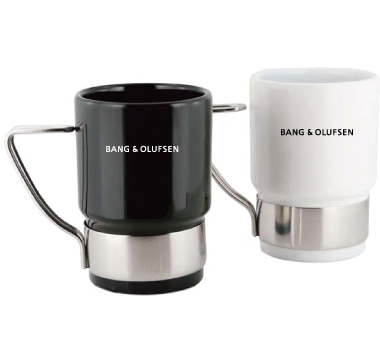 The Glasgow is a stylish ceramic mug nestled in a stainless steel cradle and handle. A very attractive mug option.