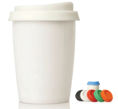A newby in our range The Stirling Cup is made from high grade cafe-grade ceramics and is full dishwasher safe for long term promotions. Featuring a stylish curved edge it looks and feels different from your average customised Eco cup! Choose between different silicone band colours and three base cup colours.