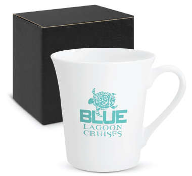 This round, latte style coffee mug is the perfect gift idea and comes in a black gift box. It'll put your branded message in the limelight and is 100% dishwasher safe and the perfect way to enjoy your favourite hot beverages.